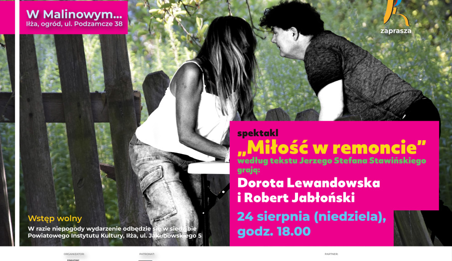 W niedzielę, 24 sierpnia o godzinie 18:00, odbędzie się przedstawienie „Miłość w remoncie” – komedia oparta na scenariuszu autorstwa Jerzego Stefana Stawińskiego, cenionego pisarza i scenarzysty.